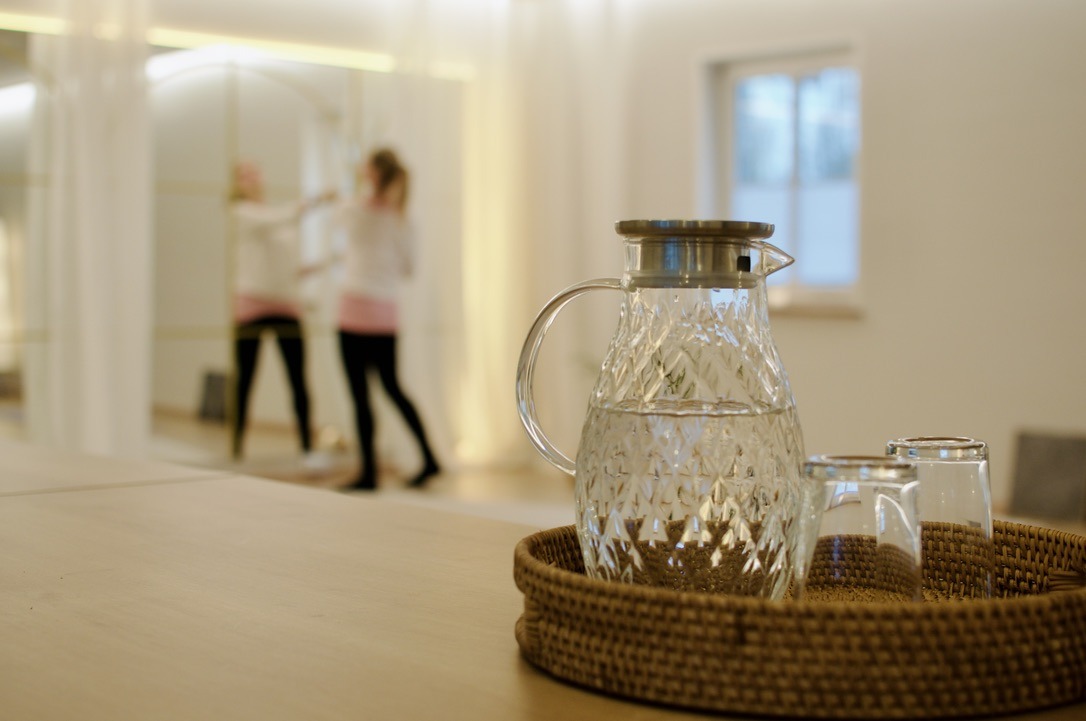 - Wasserkaraffen und Gläser für warme und kalte GetränkeLichtstimmung durch